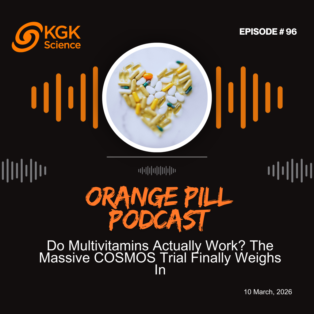 In Episode 96 of the Orange Pill Podcast, we break down the results of the 21,000+ participant COSMOS trial, revealing how daily multivitamins may slow biological aging and how cocoa flavanols could reduce cardiovascular death risk by 27%.